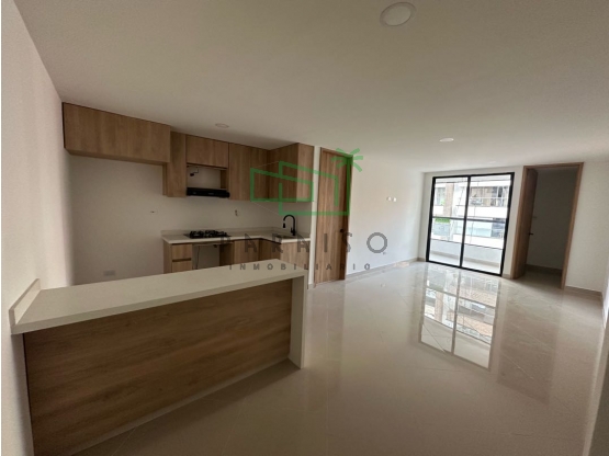 Cocina, sala comedor, zona de ropas, balcón amplio, 1 habitación con baño privado